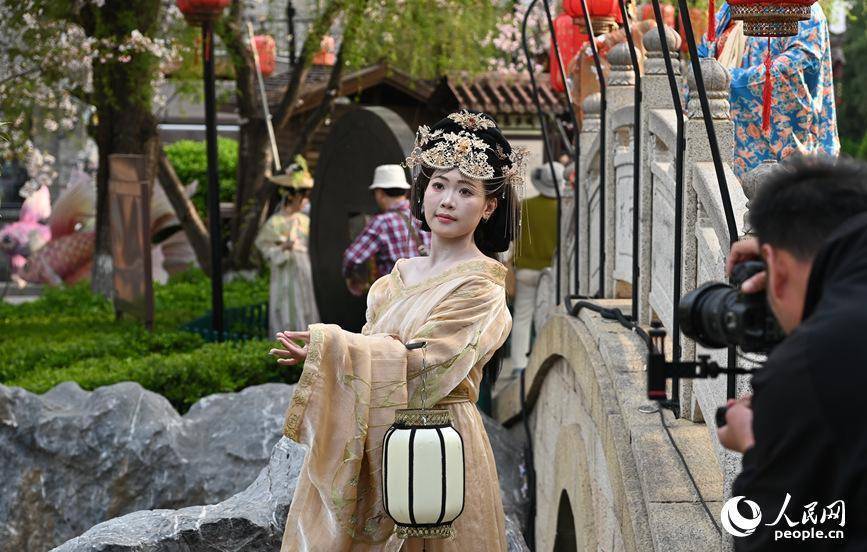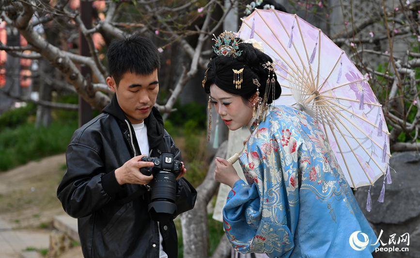 汉服满城约拍忙。人民网记者 王玉兴摄人民网洛阳3月25日电 (王玉兴、程明辉)阳春三月,鲜花盛开。河南省洛阳市洛邑古城内,欢声笑语,霓裳满城,身着各色汉服的“公主”“贵妃”“侠客”在摄影师的引导下,定格着一个个精彩瞬间。